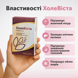 ХОЛЕВИСТА – это комплексная формула для здоровья печени и желчевыводящей системы. Благодаря сочетанию чанка пьедра, урсодезоксихолевой кислоты, холина и лецитина продукт способствует естественному очищению организма, нормализует желчеотделение и поддерживает оптимальный обмен жиров.