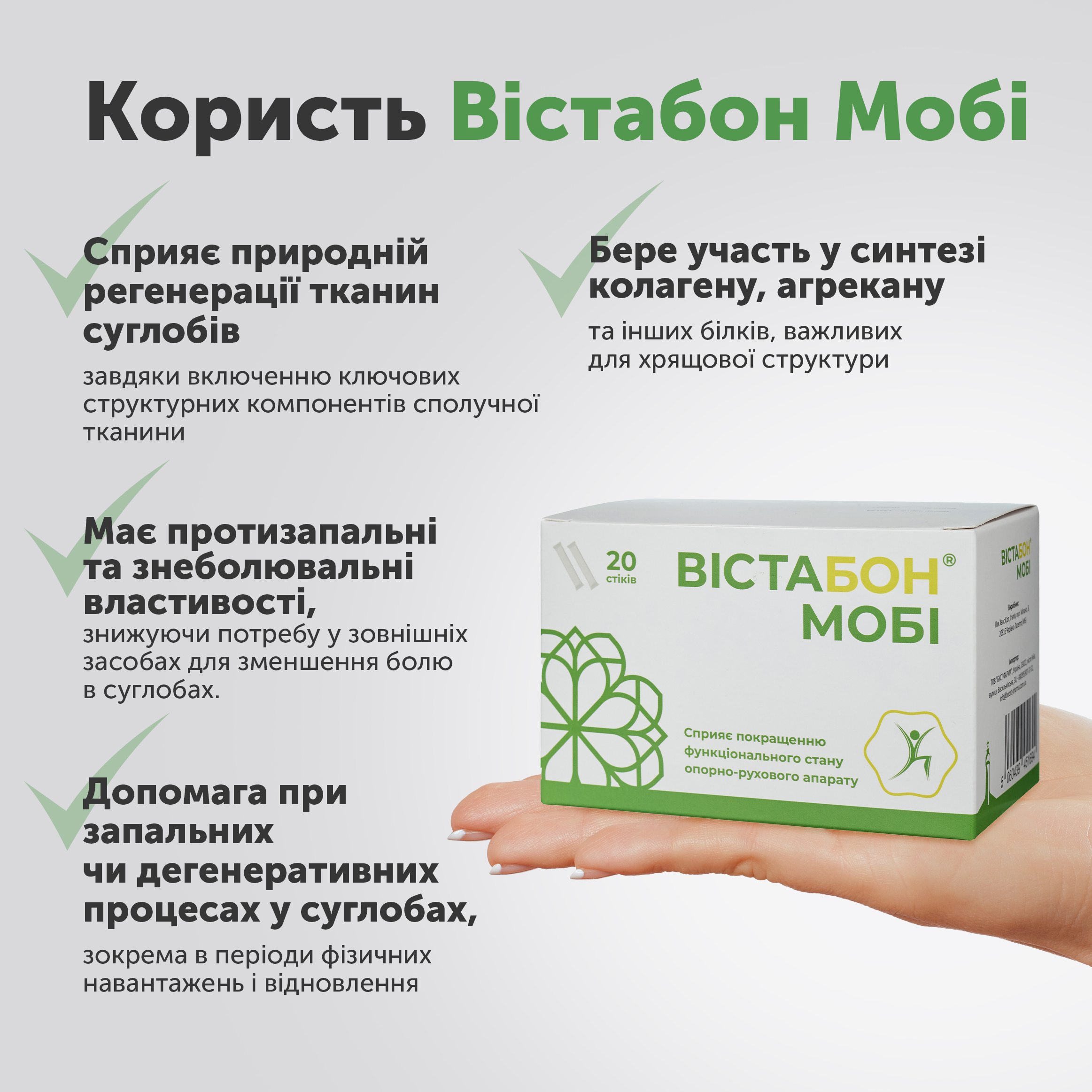 На відміну від звичайних препаратів, які діють лише на один аспект проблеми, Вістабон Мобі створений як комплексне рішення для суглобів.