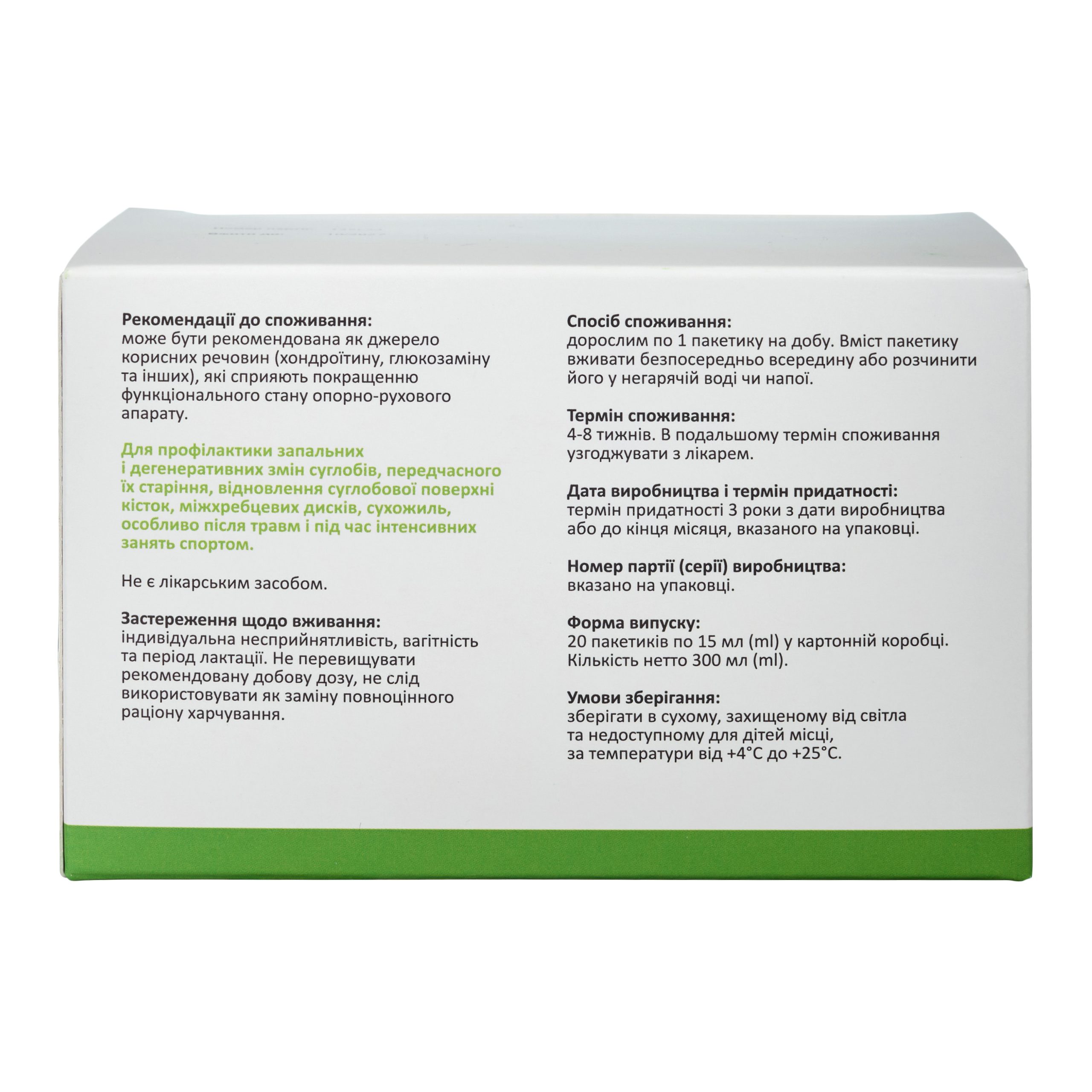 • Сприяє природній регенерації тканин суглобів завдяки включенню ключових структурних компонентів сполучної тканини.